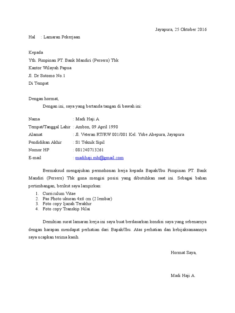 | Judul: 17 Contoh Surat Lamaran Kerja Di Bank Papua |