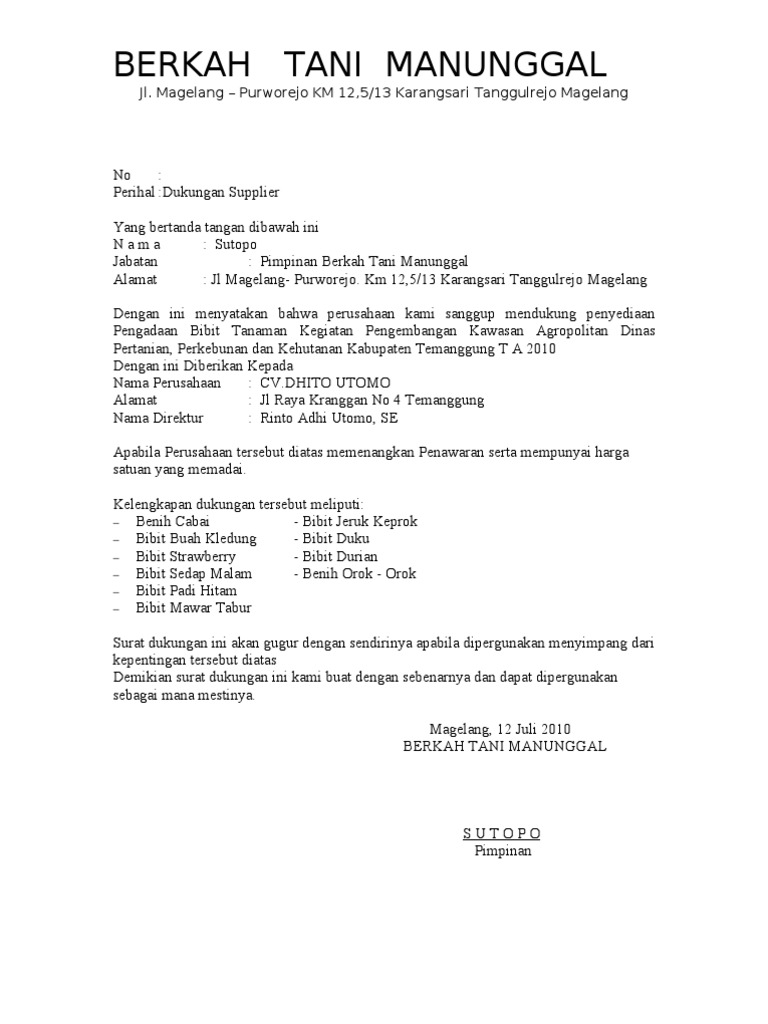 | Judul: Contoh Surat Dukungan Tender Perusahaan Yang Benar Bloggadogado |